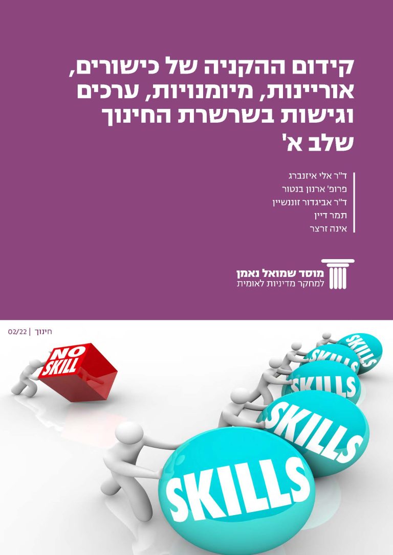 איזנברג, א׳, בנטור, א׳, זוננשיין, א׳, דיין, ת׳, וזרצר, א׳ (2022). קידום ההקניה של כישורים, אוריינות, מיומנויות, ערכים וגישות בשרשרת החינוך. מוסד שמואל נאמן.