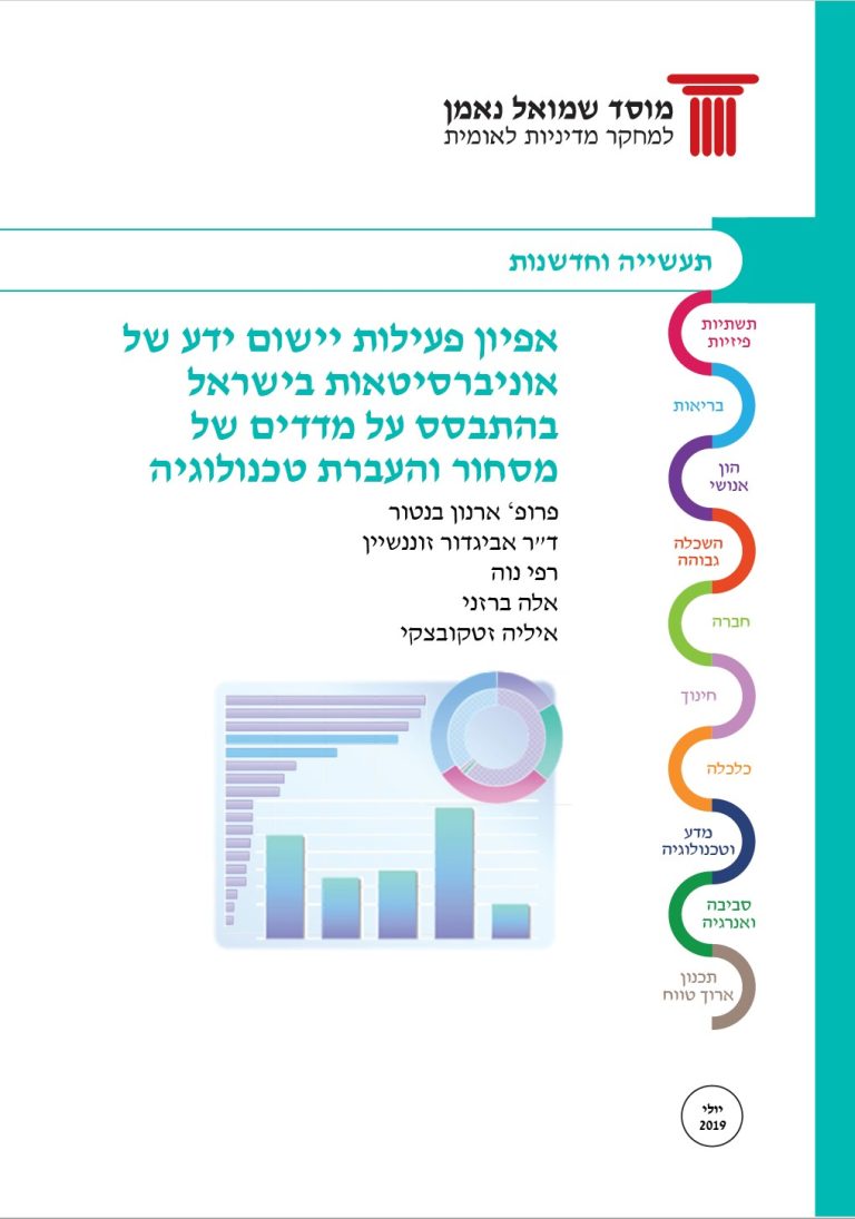בנטור, א׳, זוננשיין, א׳, נוה, ר׳, ברזני, א׳, וזטקובצקי, א׳ (2019). אפיון פעילות יישום ידע של אוניברסיטאות בישראל בהתבסס על מדדים של מסחור והעברת טכנולוגיה. מוסד שמואל נאמן.