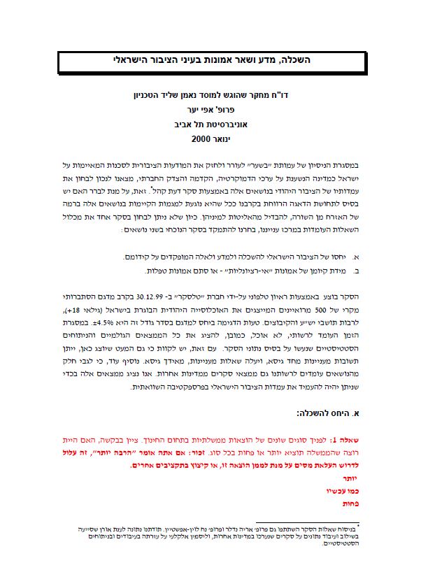 א. יחסו של הציבור הישראלי להשכלה ולמדע ולאלה המופקדים על קידומם.