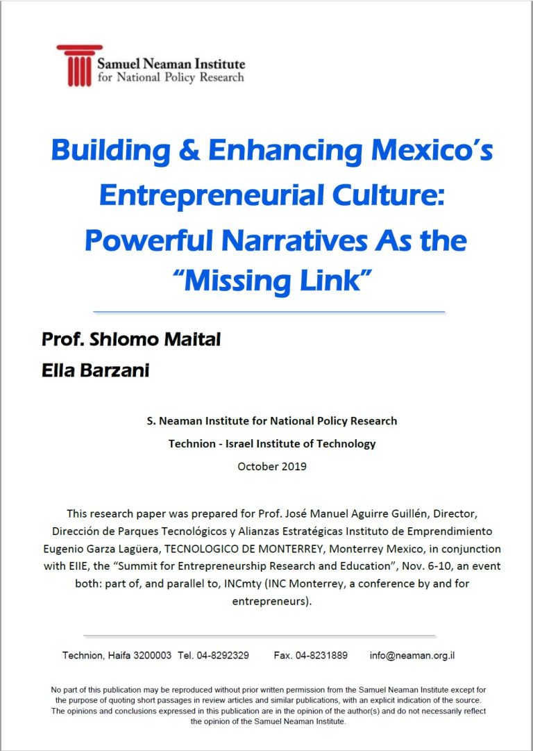 This essay proposes a method for building and enhancing Mexico’s entrepreneurial startup culture, by creating and disseminating powerful narratives or stories, about startups, as a crucial often-missing link in the causal entrepreneurial chain. It reviews and summarizes key research papers published in the last four years or so and draws lessons from Israel’s experience.