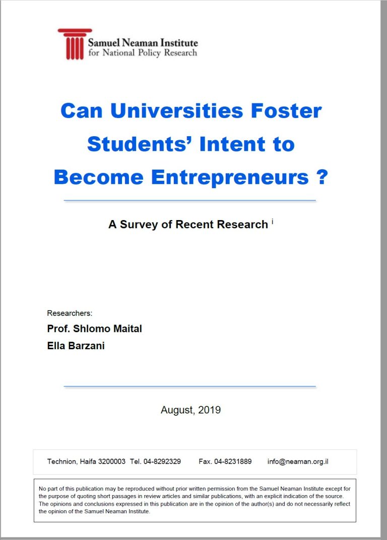 Maital, S., & Barzani, E. (2019). Can universities foster students’ intent to become entrepreneurs?. Samuel Neaman Institute.