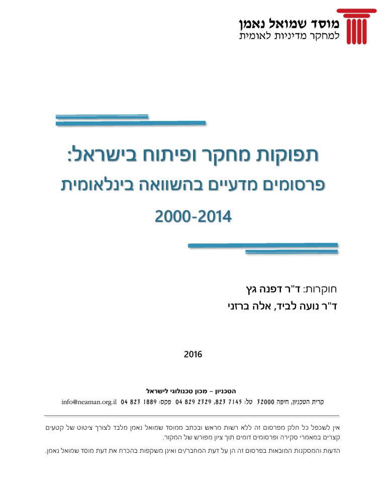 This is the third in a series of studies financed by the Samuel Neaman Institution and the National Council for R&D (NCRD). The study’s findings are as follows: