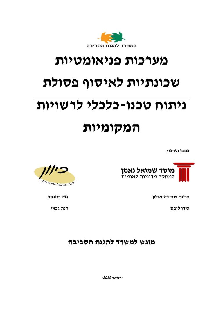 Ayalon, O., Liebes, I., Rosental, G., & Gabay, D. (2015). Residential pneumatic refuse collection systems – techno-economic analysis for municipalities. Samuel Neaman Institute.