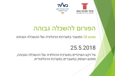 מפגש הפורום להשכלה גבוהה מס' 39 – 25.5.18 פרופ' חגית מסר ירון, ראש קתדרת קרנצברג לעיבוד נתונים, בית הספר להנדסת חשמל אוניברסיטת תל אביבעו"ד עדנה הראל-פישר, עמיתת מחקר במכון הישראלי לדמוקרטיה ולשעבר ראש תחום יעוץ וחקיקה (משפט כלכלי) משרד המשפטיםפר