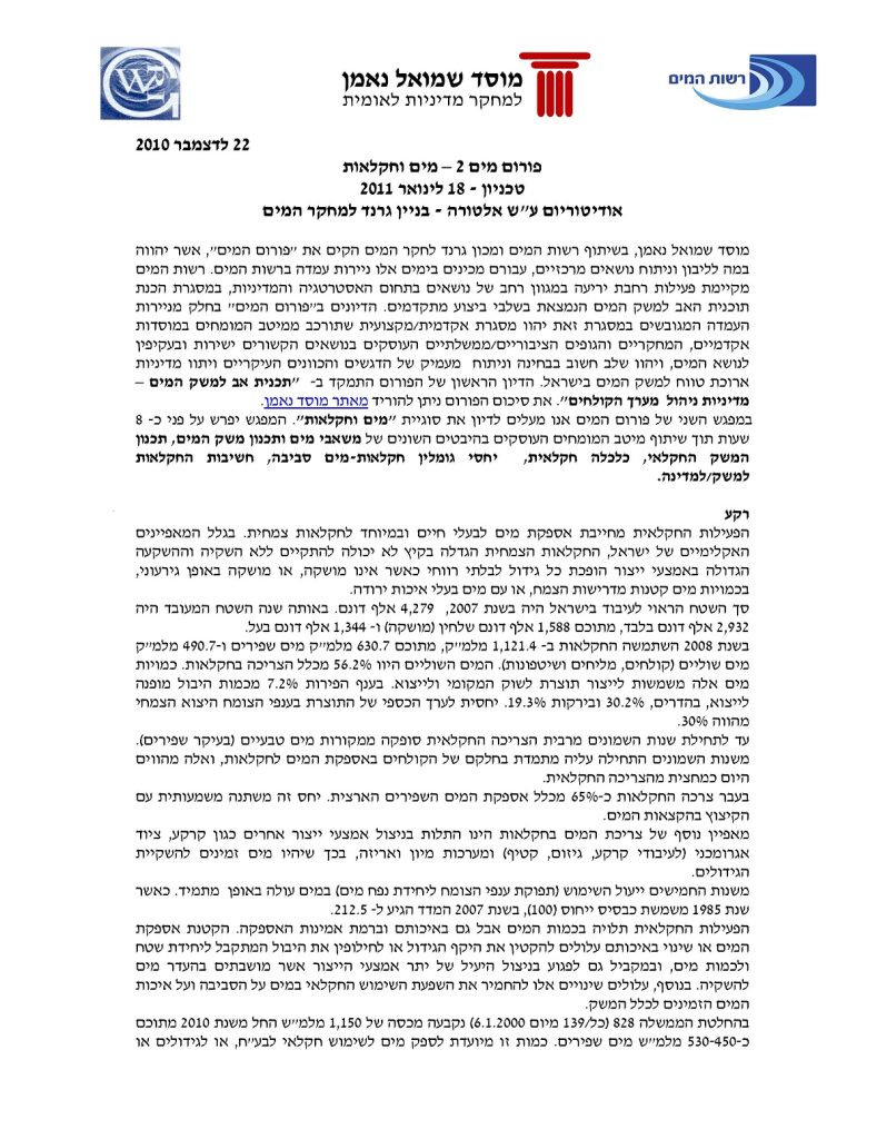 במסגרת פורום המים השני שהתקיים בטכניון – נידונו בשני מושבים, שני נושאים מרכזיים-