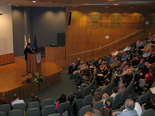 באולם הרצאות ע"ש בטלר בבנין מוסד ש. נאמן