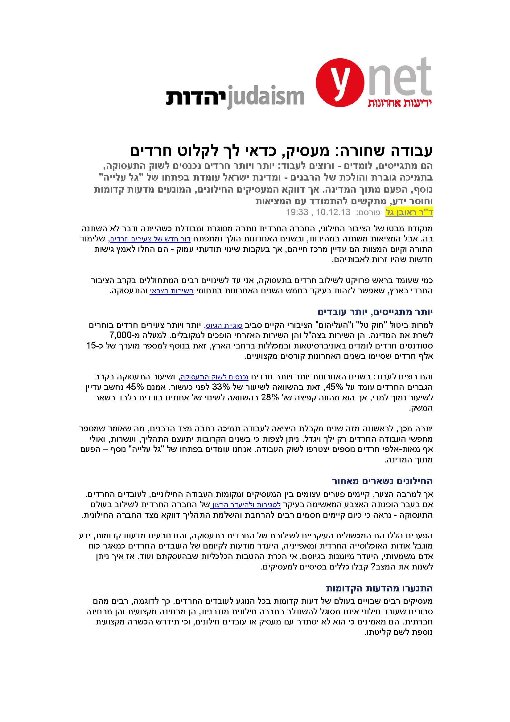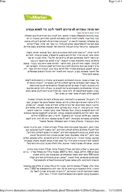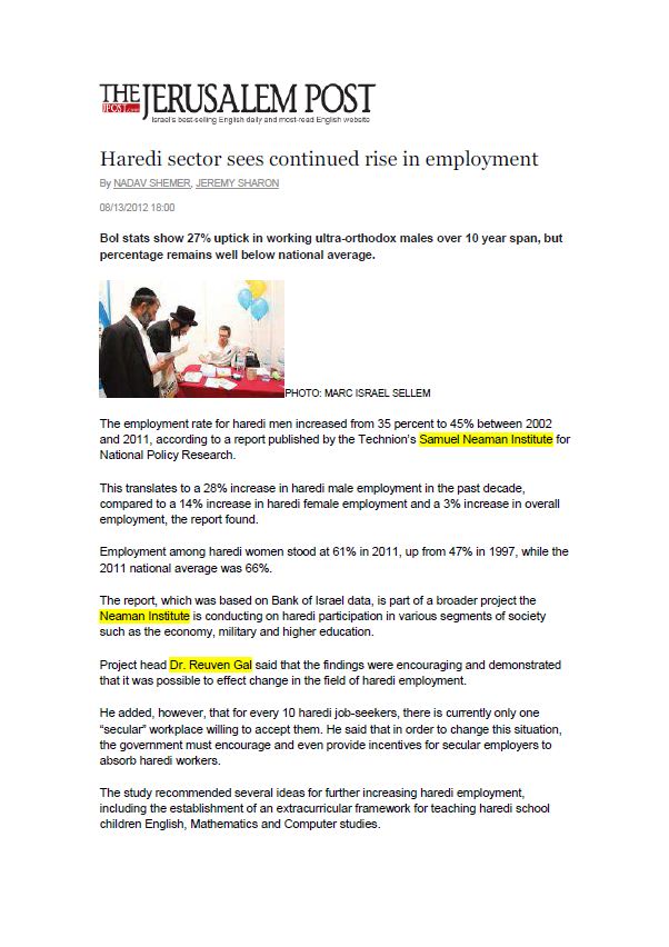 תעסוקת חרדים – חוברת מידע