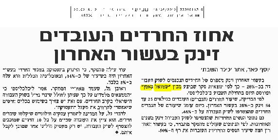 כריכת הדוח תעסוקת חרדים – חוברת מידע