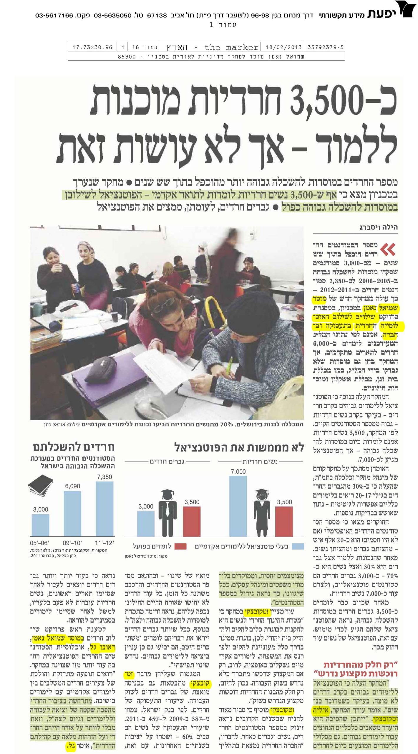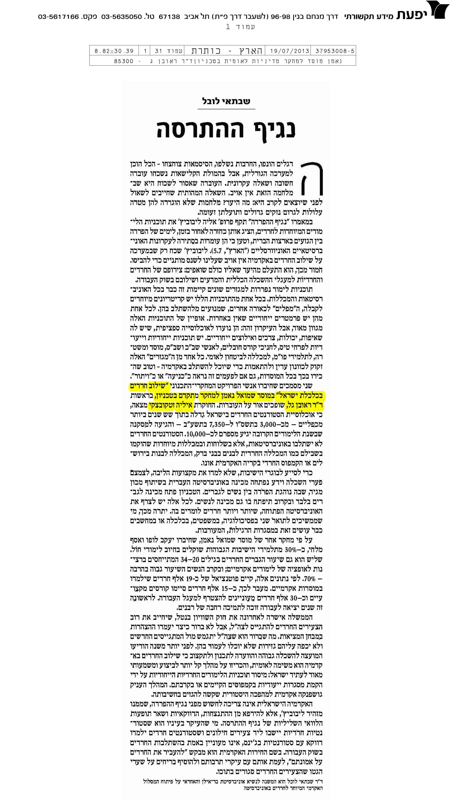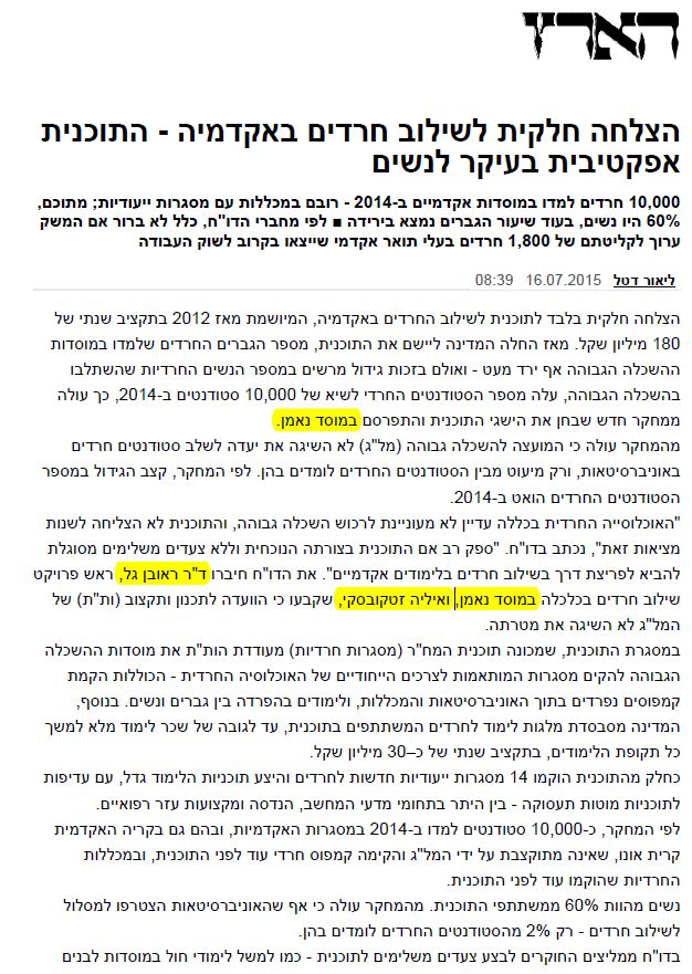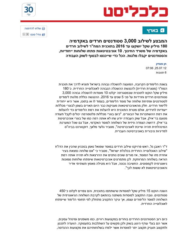 מייחל לאלפי חרדים באקדמיה