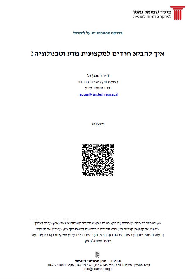 תמונת כריכת הדוח: שילוב חרדים: מודל, תסריטים ומיפוי
