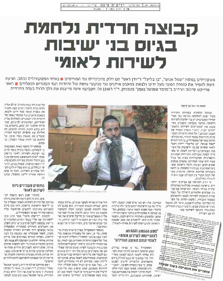 שילוב חרדים: מודל, תסריטים ומיפוי