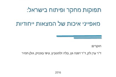 הדו"ח מסכם את המחקר השלישי בסדרת המחקרים של מוסד שמואל נאמן בנושא "תפוקות מו"פ –
