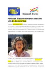 ב-2013, מוסד שמואל נאמן פרסם דו"ח המכסה את התפוקה המדעית בישראל 1990-2011, זיהוי הדיסציפלינות המדעיות המובילות בארץ ומשווה אותם למדינות ברחבי העולם. עם המיקום הגיאוגרפי הייחודי והרכב דמוגרפי, ישראל מציגה מקרה מעניין של יכולות מדעיות ותפוקה כמו גם מגמות של שיתוף פעולה. למהדורה זו, ראיינו את דפנה גץ, החוקרת הראשית של דוח זה.