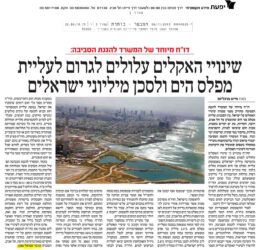 שינויי אקלים עלולים לגרום לעלית מפלס הים ולסכן מיליוני ישראלים