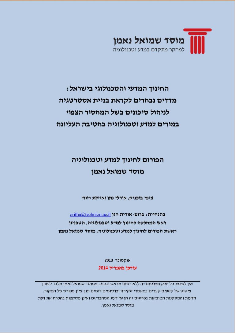 דו"ח זה הוכן כרקע לדיון הפורום ומטרתו הייתה יצירת בסיס לבניית אסטרטגיה לניהול סיכונים לקראת המחסור הצפוי במורים למקצועות המדעיים והטכנולוגיה (מו"ט).